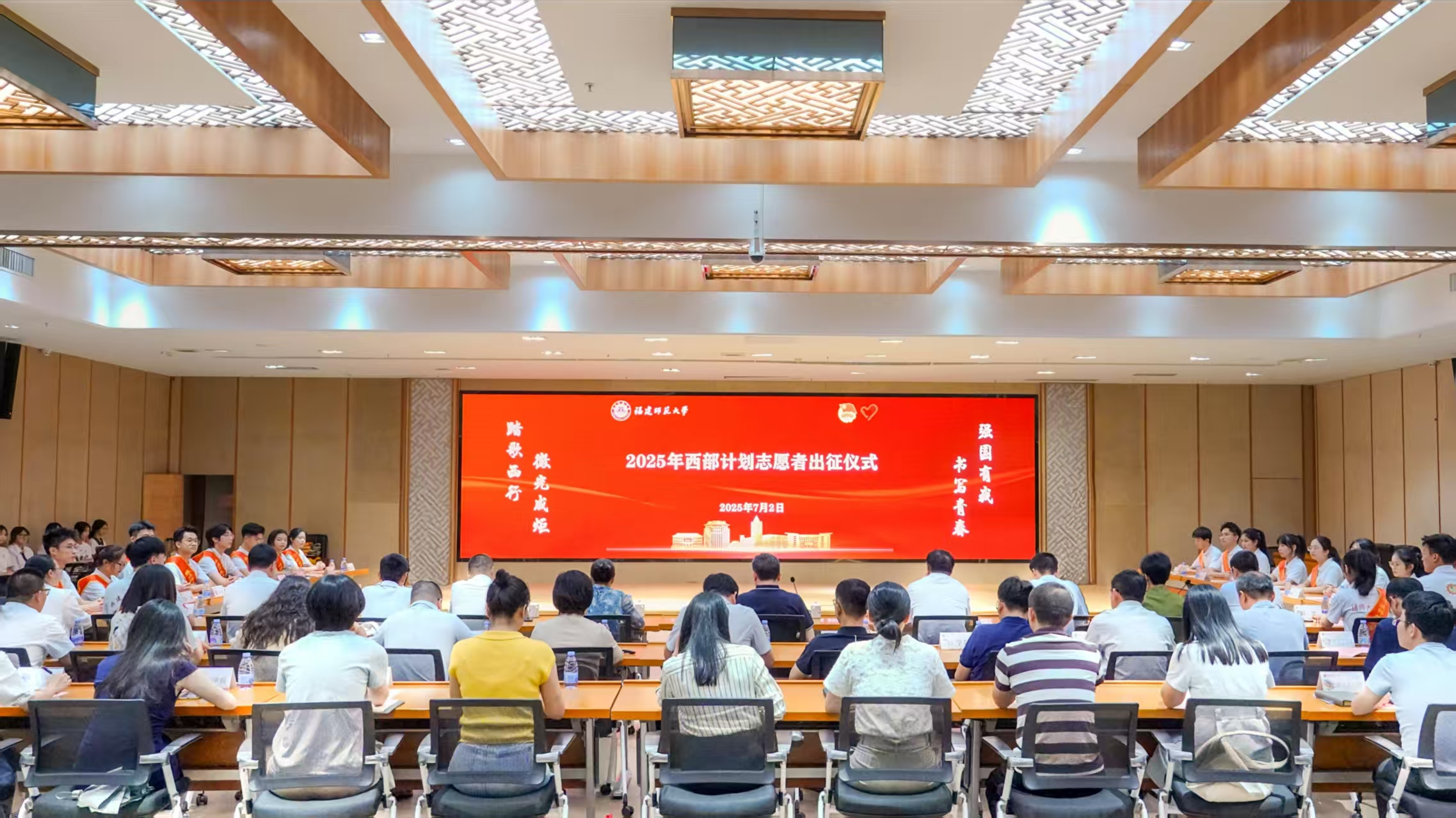 出征仪式于7月2日在旗山校区举行,副校长吴剑锋,组织部、宣传部、学生工作部、教务处、研究生院、机关党委、校团委负责人,相关学院分管学生工作负责人、团委负责人,2024、2025年西部计划志愿者代表参加。