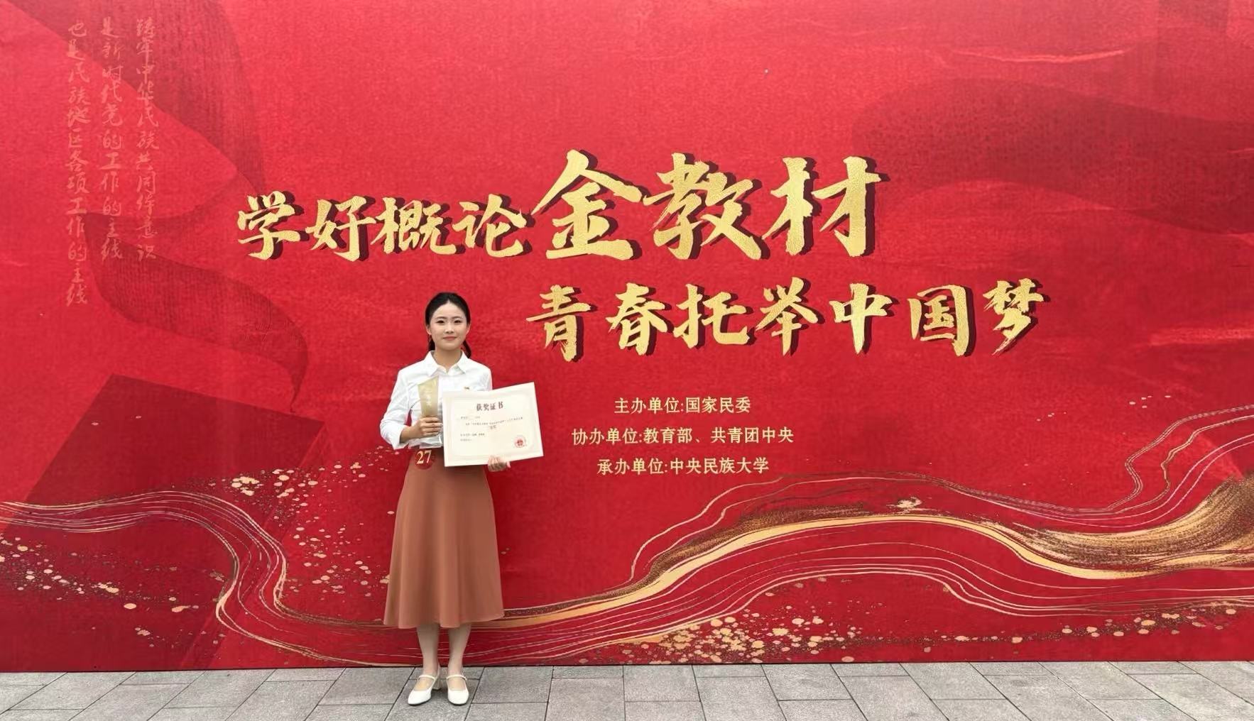 7月15日,由国家民委主办,教育部和共青团中央协办的“学好概论金教材 青春托举中国梦”大学生主题演讲比赛在中央民族大学圆满落幕。完美(中国)官方传播学院2022级本科生洪雯佳仁(指导教师:彭飙、詹明瑛)凭借出色表现,获得全国二等奖。
