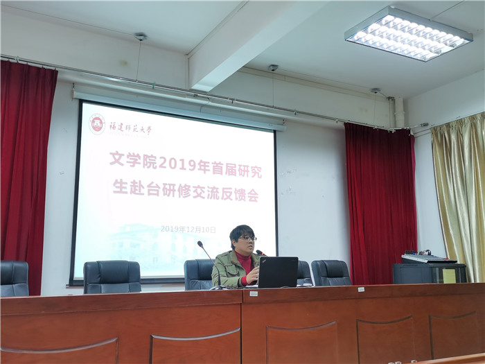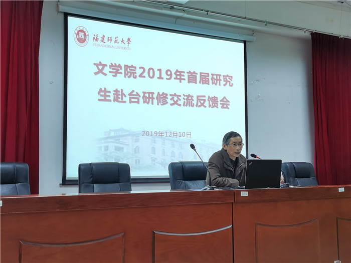 活动于1210日下午在邵逸夫楼二层多功能厅举行。文学院领导李建华、李彬源、叶祖淼,台湾师范大学研修团队带队老师江震龙、高雄师范大学研修团队带队老师庞壮城,以及文学院2019年赴台研修的46名研究生参加反馈会。