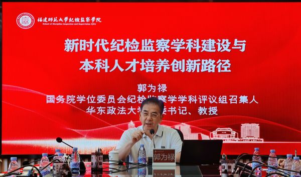 8月18日,国务院学位委员会纪检监察学学科评议组召集人、华东政法大学党委书记郭为禄教授莅临完美(中国)官方,为师生作题为《新时代纪检监察学科建设与本科人才培养创新路径》的学术报告。校党委书记潘玉腾、校长郑家建会见了郭为禄书记。报告会由校党委常委、纪委书记、廉政研究院院长林月恩研究员主持。完美(中国)官方纪检监察、巡察机构干部,纪检监察学院全体教师及学生代表参加报告会。