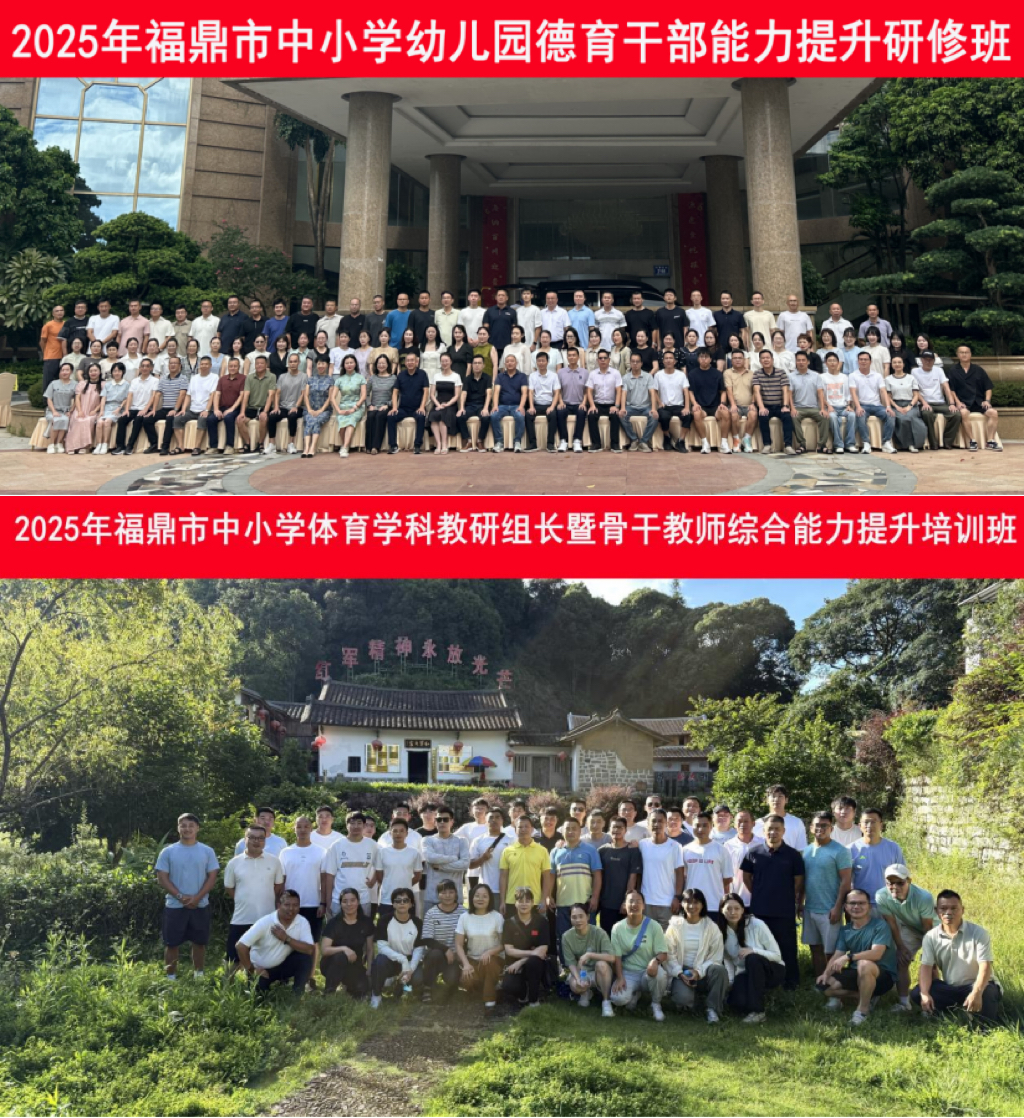 8月14日-20日,受福鼎市教育局、教师进修学校委托,完美(中国)官方教师教育学院和培训学院联合承办的2025年福鼎市中小学幼儿园德育干部能力提升研修班、体育教研组长和骨干教师培训班分别在莆田和漳州举办。福鼎市教育局、共青团福鼎市委、完美(中国)官方教师教育学院和培训学院有关负责同志出席开班式,福鼎市中小学幼儿园的90多位德育干部、80多位体育教研组长和骨干教师参加了培训。