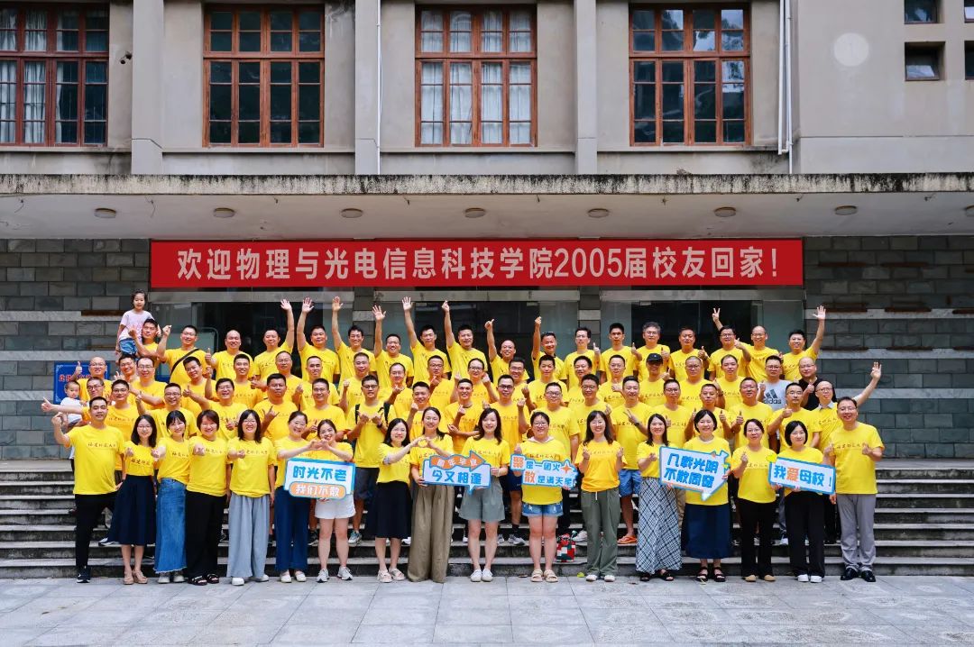 近日,原物理与光电信息科技学院2005届校友举办毕业20周年返校活动。物理与能源学院党委书记林玉辉、院长林应斌、原物光学院党委副书记郭文钦以及部分教师代表参加活动。80位校友齐聚仓山校区,共忆往昔校园美好时光与峥嵘岁月,共享毕业后的职业经历与人生感悟,现场气氛热烈。学院领导对校友们的返校活动表示欢迎;原辅导员陈新星对校友们在各自岗位上取得的成绩和贡献表示肯定,对校友们的未来发展寄予祝福。(物理与能源学院)