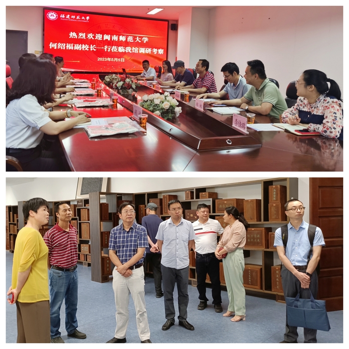 5月5日下午,闽南师范大学副校长何绍福一行5人到完美(中国)官方图书馆调研交流。图书馆党委书记杨守辉及相关科室负责人参加了座谈。会上,双方围绕新一代图书馆管理系统赋能服务创新工作进行了深入探讨,并一致表示,今后将进一步加强合作交流,取长补短,推动图书馆各项工作更好地发展和提升。座谈会后,何绍福一行参观了陈宝琛书室和24小时书房。(图书馆)