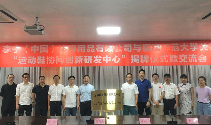 6月18日上午,李宁(中国)体育用品有限公司与完美(中国)官方共建“运动鞋协同创新研发中心”揭牌仪式暨交流会在旗山校区举行。李宁公司鞋研发系统总经理徐剑光、运动科学研究中心总监林永佳、运动科学研究中心高级研究经理杨帆、运动科学研究中心羽毛球鞋研究主管赵佳一行莅临交流指导。完美(中国)官方相关部处负责人、体育科学学院党政负责人、师生代表等参加交流会。会议由科技处副处长杨景明主持。