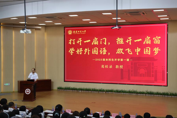 9月8日上午,外国语学院院长葛桂录教授在仓山校区陈明金教学楼多功能厅分别为2025级研究生、本科生新生讲授“开学第一课”。