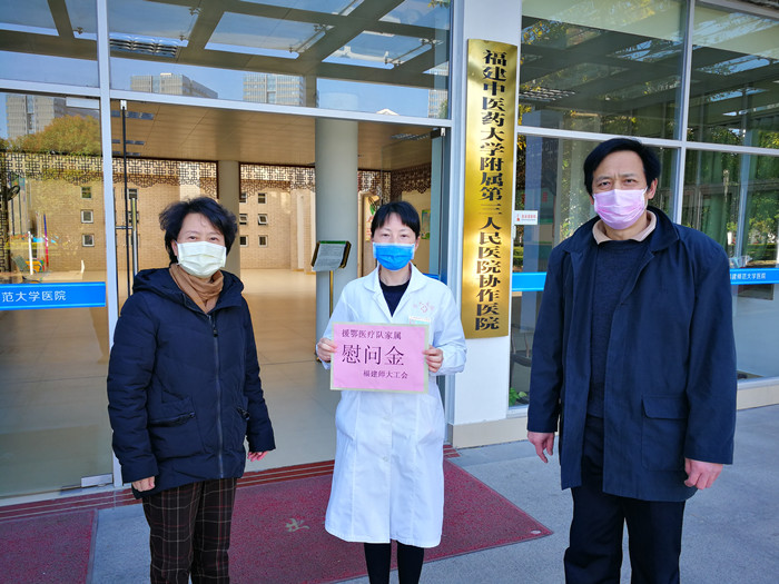 完美(中国)官方共有3名教工家属参加福建援鄂医疗队,分别在武汉和宜昌的定点医院参加抗击疫情的医疗救治工作。校工会负责人向家属详细了解了医护人员在湖北抗疫一线的工作、生活情况和家庭生活中存在的困难,代表学校向家属送上慰问金,并嘱咐家属要保重好身体,做好自己和家人的防护工作,确保家人“零感染”,让援鄂医护人员能够安心、放心、顺心地投入疫情防控阻击战。