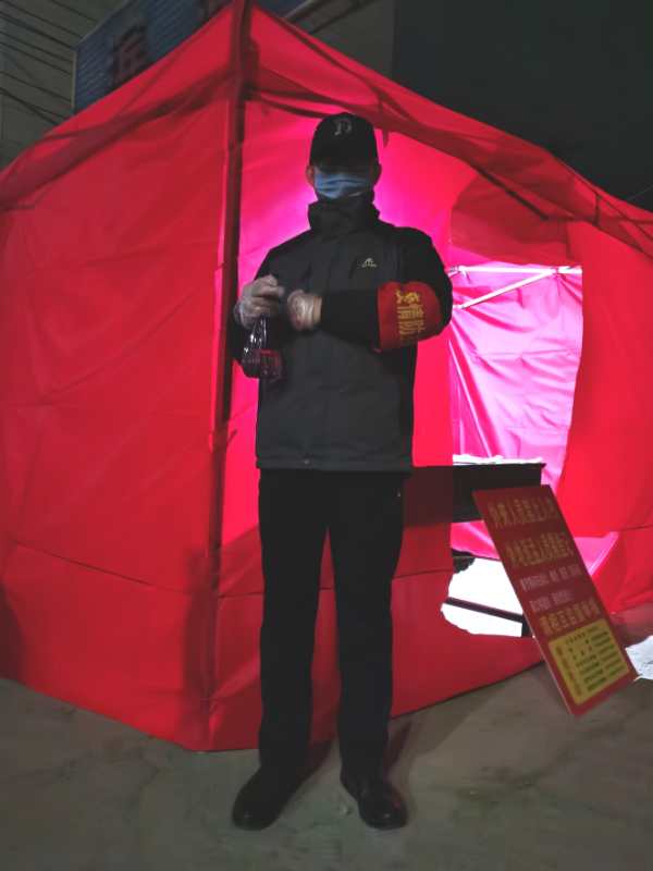 尚光一老师自元宵节后开始参与志愿服务,每五天轮班一天。主要负责在小区门口协助登记与查看进出小区人员情况,对进出小区人员进行消毒,对外部来访人员进行劝返,及时上报发烧人员情况。