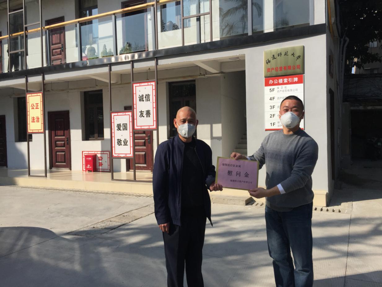 杨金辉书记表示,叶锦林同志的爱人在关键时刻挺身而出,积极报名主动请缨奔赴抗疫前线,体现了责任担当和大爱精神,她的行为既是家人的骄傲,也是福建人民的骄傲,值得全社会的尊重和关注。而叶锦林同志作为公司事业发展部的负责人,既要在工作岗位做好疫情防控工作,又要在家里做好后勤保障,既是坚强的后盾,更是幕后英雄。他希望叶锦林同志保重好身体,照顾好家庭,让其爱人在前线安心工作,早日取得战疫的胜利,平安凯旋。生活中如遇到困难要及时反映,公司将第一时间提供帮助、解决家庭实际困难。