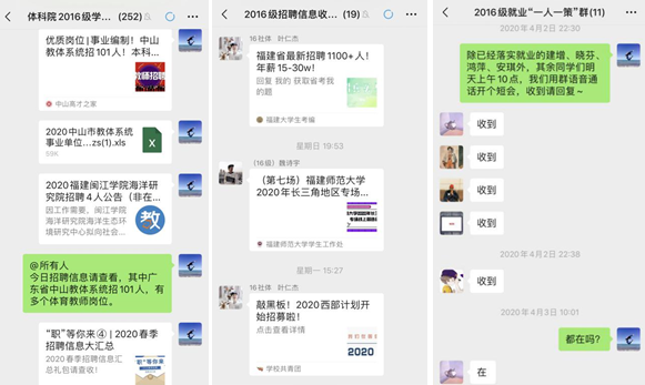 邀请厦门市中学体育学科带头人李加前老师在学校教学云平台开设毕业班就业指导“云”课堂;邀请庄世阳、石斌等多位优秀校友通过腾讯会议APP举办考研复试与调剂、教师招聘、辅导员招考等专题的经验分享会。