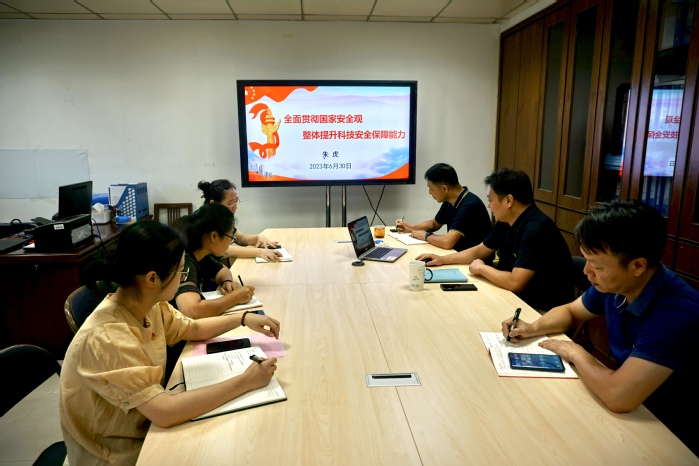 朱虎结合部门、岗位职责及管理工作实际,以《全面贯彻国家安全观 整体提升科技安全保障能力》为题,系统阐述总体国家安全观基本内涵和总体要求,进一步指出科技安全是支撑国家安全的重要力量和基础,要求支部党员要以更高的站位和更开阔的视野看待安全问题,坚持底线思维、增强忧患意识,保障重点安全领域,有效防范和化解重大风险。