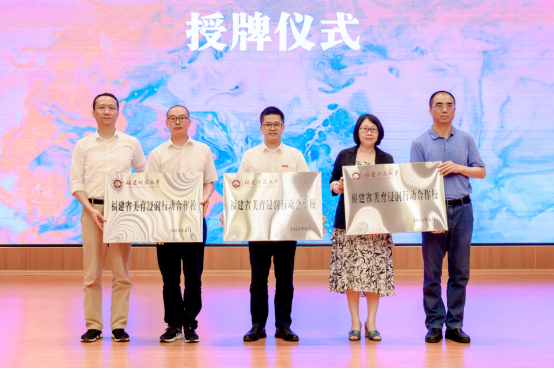 仪式上,郑家建与王浩为“美育浸润”合作校授牌并与支教团队合影留念。郑家建在致辞中介绍了学校美育教育发展情况,邀请平潭师生赴完美(中国)官方进修和学习,叮嘱支教团队学生不负教师人才后备队的使命担当,圆满完成此次支教行动。