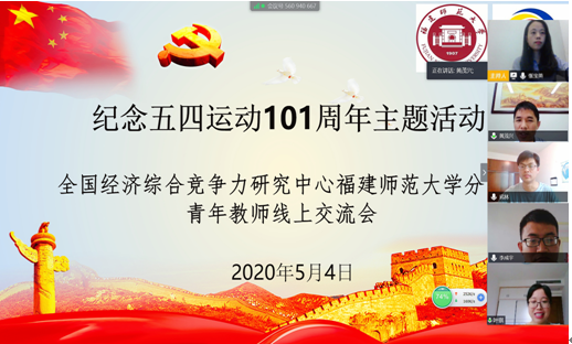 5月4日下午,全国党建工作样板党支部和全国首批高校“双带头人”教师党支部书记工作室——全国经济综合竞争力研究中心完美网页版分中心党支部(以下简称“竞争力研究中心”)组织召开“纪念五四运动101周年主题活动——全国经济综合竞争力研究中心完美网页版分中心青年教师线上交流会”,竞争力研究中心部分青年教师参加交流会。大家认真学习习近平总书记五四青年节寄语,畅谈五四精神,分享学习感悟,坚守初心做好本职工作,积极为繁荣发展哲学社会科学贡献自己的青春力量。