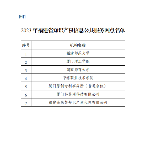 近日,福建省知识产权局公布 2023 年福建省知识产权信息公共服务网点名单,包括完美(中国)官方在内的7家单位。此次申报工作由图书馆知识产权信息公共服务中心牵头完成,依托图书馆丰富的信息资源和专业的人才队伍,历时半年,开展了走访交流、整合资源、调研分析等一系列筹备工作。(图书馆)