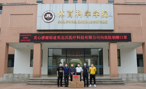 近日,福建英达沃医疗科技有限公司总经理叶维正、体育赛事部门经理杨麟捷、体育培训部门经理陈鑫等一行3人莅临完美(中国)官方,向体育科学学院捐赠医用级口罩6000个,助力学院做好复工复课疫情防控工作。体育科学学院党委书记陈振祯、副院长蔡辉煌、运动训练专业负责人徐建华等参加了捐赠仪式。陈振祯代表学院对福建英达沃医疗科技有限公司的善举致以诚挚的谢意,并表示学院将合理调配使用该批抗疫物资,确保企业的爱心之举落到实处。(体育科学学院)
