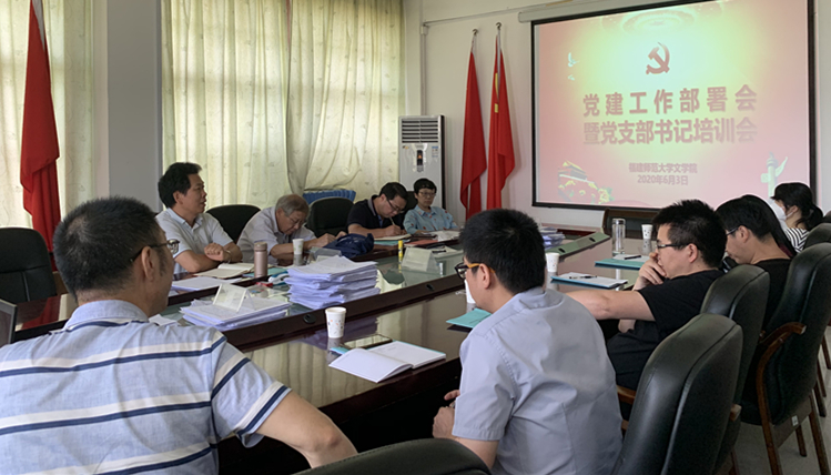 日前,文学院党委在仓山校区文科楼会议室举行党建工作推进会暨党支部书记培训会。学院领导李建华、李小荣、叶祖淼,教工党支部书记和全体辅导员参加会议。
