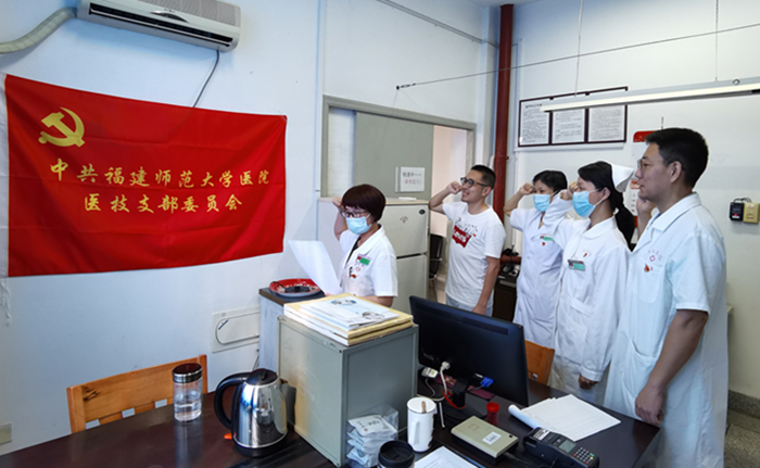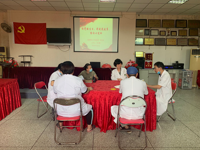 七一当天,医技党支部举行重温入党誓词仪式,坚定理想信念;口腔党支部开展线上送祝福,礼赞建党99周年活动;医生第一党支部召开专题组织生活会,支部党员通过讲述、评论、朗读等形式,畅谈校园疫情防控医疗保障体会;医生第二党支部到林则徐纪念馆开展主题党日活动,观看“永远跟党走”专场演出;综合党支部开展“纪念建党99周年,我为党旗添光彩”主题党日活动,参观林则徐纪念馆、重温入党誓词、结合每名党员的入党志愿书,重温入党初心。