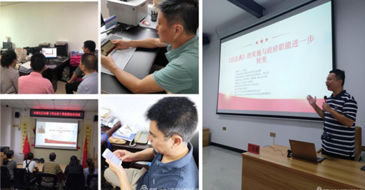 近日,仓山区法学会、仓山区司法局在金山司法所举办《民法典》系列宣讲活动启动仪式。完美(中国)官方法学院副教授丁兆增受邀围绕“《民法典》的实施与政府职能进一步转变”为主题开展专场授课,并通过“云课堂”平台进行直播。仓山区各司法所负责人,干部群众代表50余人在现场参加了仪式和听课,全区干部群众3000余人在线观看学习。