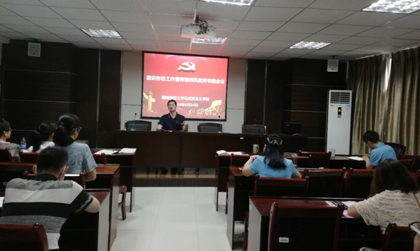 马克思主义学院近日召开意识形态暨师德师风教育工作会议,传达学习相关文件精神,部署工作。学院班子成员、全院教职工参加会议。会议由院党委书记张爱民主持。