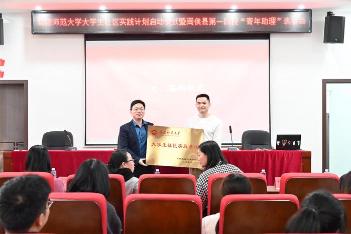 启动仪式上,校团委与闽侯团县委签订共建协议,并为大学生社区实践基地授牌。完美(中国)官方第22期“青马”学员王英华、李丽芳获评2023年度“闽侯县优秀青年助理”。根据协议,校团委与闽侯团县委、上街镇将合作开展青年马克思主义者培养工程、各类文化科技活动、青少年社会实践与帮扶、重点课题调查与研究等工作,共同服务青年成长,助力基层治理高质量发展。