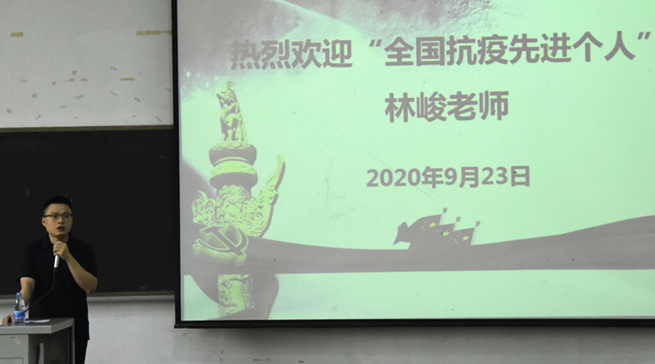 近日,生命科学学院举行全国抗疫精神报告会,邀请校友、2007届生物工程专业本科毕业生、“全国抗疫先进个人”林峻回母校作报告。院党委副书记吴志锋,2020级全体本科生聆听了报告会。