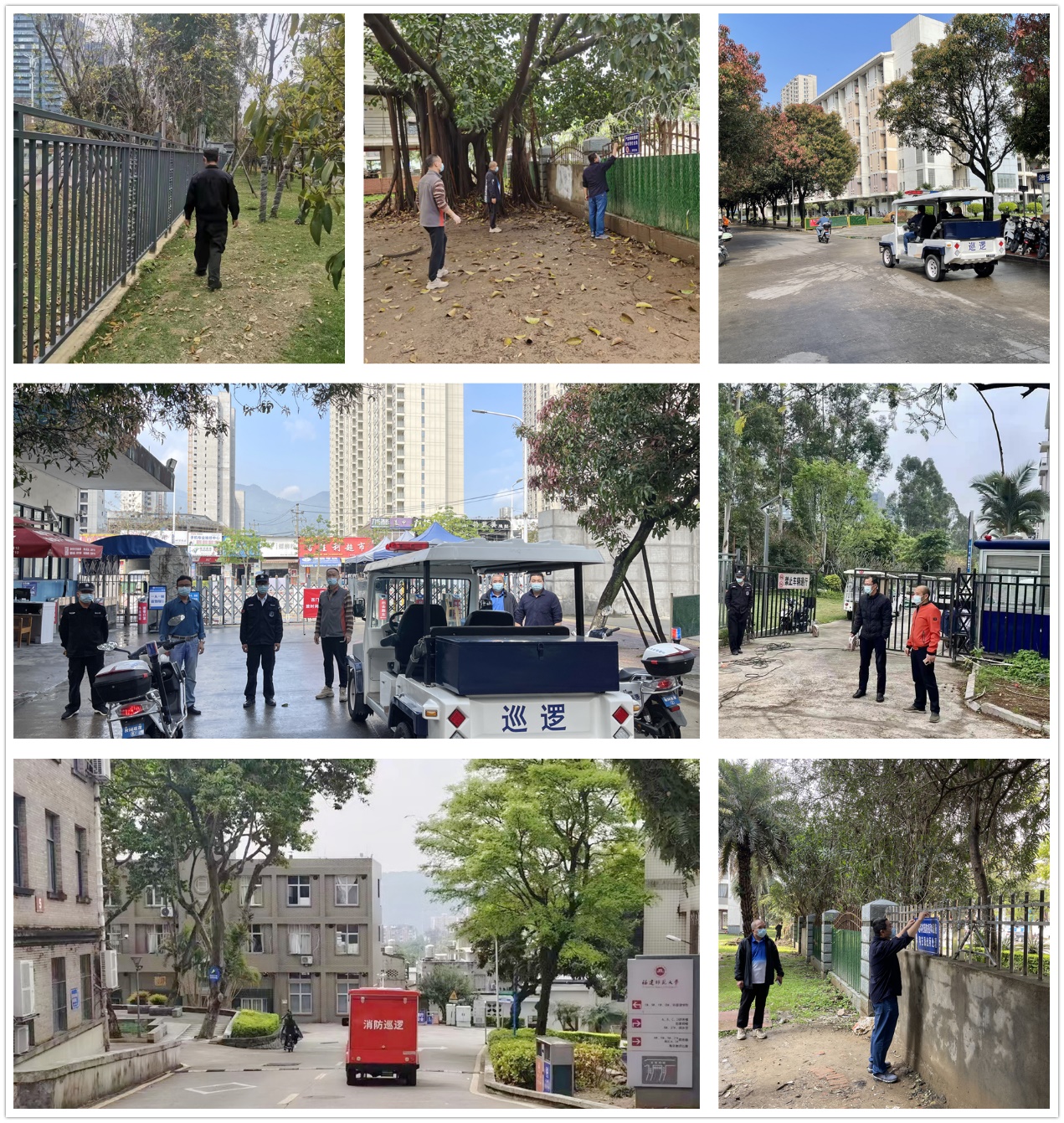 处(部)干部职工奋勇争先、担当作为,任劳任怨、履职尽责,取消休假、主动住校、舍小家为大家,每天不间断巡查校园,严查违规出入校人员,耐心劝导学生拒点外卖,维持多轮全员核酸检测秩序,加强学校隔离点的守护,第一时间处置涉校涉疫突发事件。大家始终以饱满的热情、高度的责任感,压紧压实防控责任,在自己平凡岗位上默默守护着平安校园。防疫战斗期间,校党委书记潘玉腾、副校长涂荣、纪委书记林月恩等领导多次亲临一线检查指导安全、防控工作,慰问保卫一线同志。要求全体同志发扬不怕吃苦、连续作战、勇于担当的精神,继续坚守岗位,认真履职,确保疫情防控下校园安定稳定。