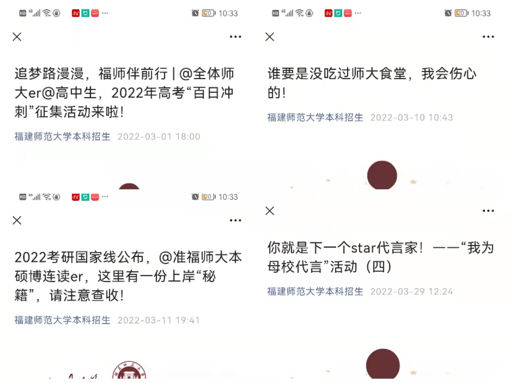 支部立足提升学校本科生源质量目标,在疫情期间通过线上、线下相结合,多途径、多形式拓展招生宣传,提升宣传实效。通过本科招生微信公众号和本科招生网发表招生宣传推文;组织130支志愿者队伍开展“我为母校代言”活动,通过线上总结反馈会,巩固招生宣传成效;加强与线上媒体合作力度,向社会推介学校人才培养和内涵建设成效,提升学校的美誉度。在加强学院招生宣传团队组建力度的基础上,积极动员在岗教职工、广大校友和退休干部为本科招生宣传贡献力量。