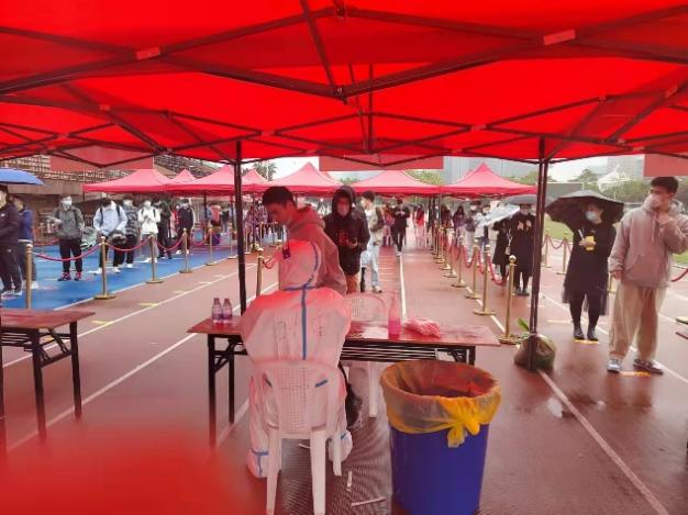 开学以来,学校已开展多轮师生全员核酸检测。核酸检测工作覆盖范围广、参与人员多、时间安排紧,校医院广大党员干部、一线医护人员主动请缨,冲锋在前,忘我工作,助力核酸检测圆满完成。