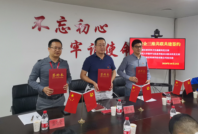 10月23日,数学与信息学院2018级本科党支部与高新区教育和卫生健康局党支部、福州高新区高宏培训学校有限公司党支部在高新区教育和卫生健康局会议室举行党建共建协议签署仪式。