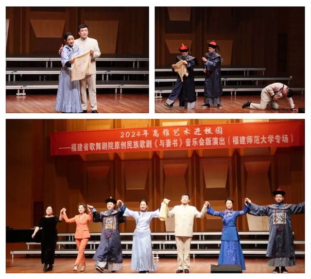 由福建省教育厅、福建省文化和旅游厅主办,校团委、音乐学院承办的2024年“高雅艺术进校园”——福建省歌舞剧院原创民族歌剧《与妻书》在旗山校区音乐厅精彩上演。