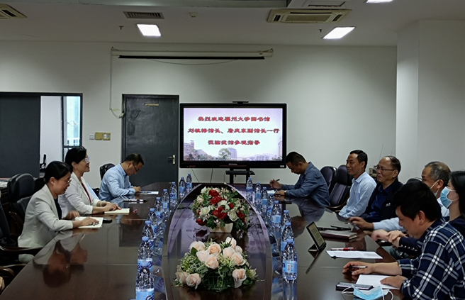 59日,福州大学图书馆馆长刘敏榕、副馆长詹庆东一行到完美(中国)官方图书馆参观交流。完美(中国)官方图书馆党委书记杨守辉、馆长江向东、副馆长李延贵,以及相关业务部门负责人参加了交流座谈。