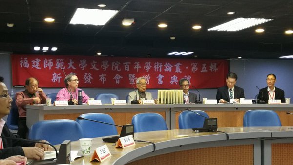 On April 8th, the launch and presentation ceremony of Centennial Academic Books Series by College of Chinese Languages and Literature of FNU (V) and the 5th Cross-Straits Symposium on Chinese Literature, co-hosted by the College of Chinese Languages and Literature of Fujian Normal University, Kaiming Charity Foundation, and the Department of Chinese of Taiwan Normal University, and organized by Taiwan Wan Juanlou Books Co., Ltd., was held in Taiwan Normal University. More than 100 scholars and representatives were invited. They were from different universities, academic institutions and the publishing industry, including Taiwan Normal University, Chengchi University, Taiwan Central University, Chung Cheng University, Chung Hsing University, University of Taipei, Kaohsiung Normal University, Pingtung University, Taitung university, Chiayi University, Donghua University, Taiwan Ocean University, Quemoy University, Shihhsin University, Tamkang University, Tzu Chi University, Huafan University, Fo Guang University, Aletheia University, Mingdao University, the Taiwan Examination Yuan, Taiwan Academia Sinica, Taiwan Publishing Association, Huamulan Culture Press, Quemoy Art Museum. Professor Wang Wending, former vice president of FNU, heads of College of Chinese Languages and Literature and the author representatives of the books series also attended the activity.