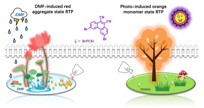 In their second research, they first developed room-temperature phosphorescence (RTP) with multiple stimulus responses in both aggregate and single-molecule states. The experimental results demonstrated that the luminescence center came from the clusters formed by a tiny amount of guest molecule and host molecule during the crystallization process. These multi-mode stimulus-responsive phosphorescent materials were expected to be the next generation of smart materials, which played an important role in the fields of password lock and information encryption and decryption. The study was published in Chemical Engineering titled as Multimode Stimuli Responsive Dual-state Organic Room Temperature Phosphorescence from a Phenanthrene Derivative.