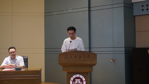 The representative from Graduate School shared his own experience of learning English with the teachers and students present, highlighting the importance of promoting English learning and teaching through competition. Then, the leader in charge of the administration of College of Foreign Languages read out the list of winners. And Liang Li’e, on behalf of the award-winning teachers, and Zhou Sheng, on behalf of the award-winning students, made a speech respectively. Yue Feng, professor of College of Foreign Languages and deputy director of the Organizing Committee of the Contest, made a comment on the contest, entitled “How to Outshine Others in the Competition”.