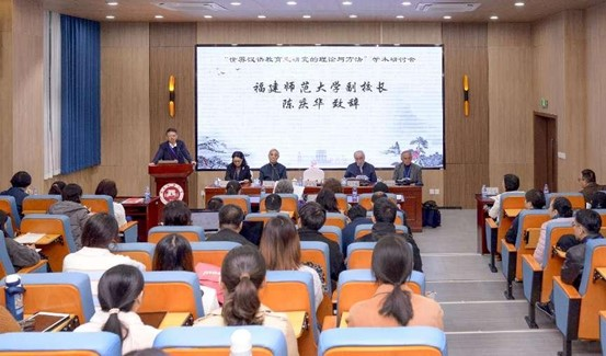 The symposium, hosted by College of International Education of FNU and co-organized by the Institute for International Communication of Chinese Culture (IICCC) of Beijing Foreign Studies University, was held in the conference room of Soledad Building on December 16 and 17. FNU Vice President Chen Qinghua, Zhang Chaoyi, Dean of IICCC, and Zhang Xiping, President of the World Scholarly Association for the History of Chinese Language Teaching, addressed the opening ceremony. Nearly 80 teachers and students from more than 10 universities at home and abroad, including Peking University, Hong Kong Baptist University, the University of Macau, Kansai University (Japan), and the University of La Rochelle (France), attended the event.