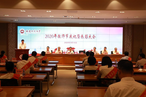 On the afternoon of September 10, FNU held the 36th Teachers’ Day celebration and commendation ceremony, attended by FNU leaders Li Baoyin, Wang Changping, Chen Xiaohong, Li Xuan, Lai Hairong, Zhen Jiajian and Tu Rong, heads of different departments and colleges, representatives of advanced collectives and individuals, and representatives of teachers and students. The main venue of the ceremony was the Hongda Hall on Qishan campus and each secondary unit set up a sub-venue to attend it simultaneously through the webcast platform.