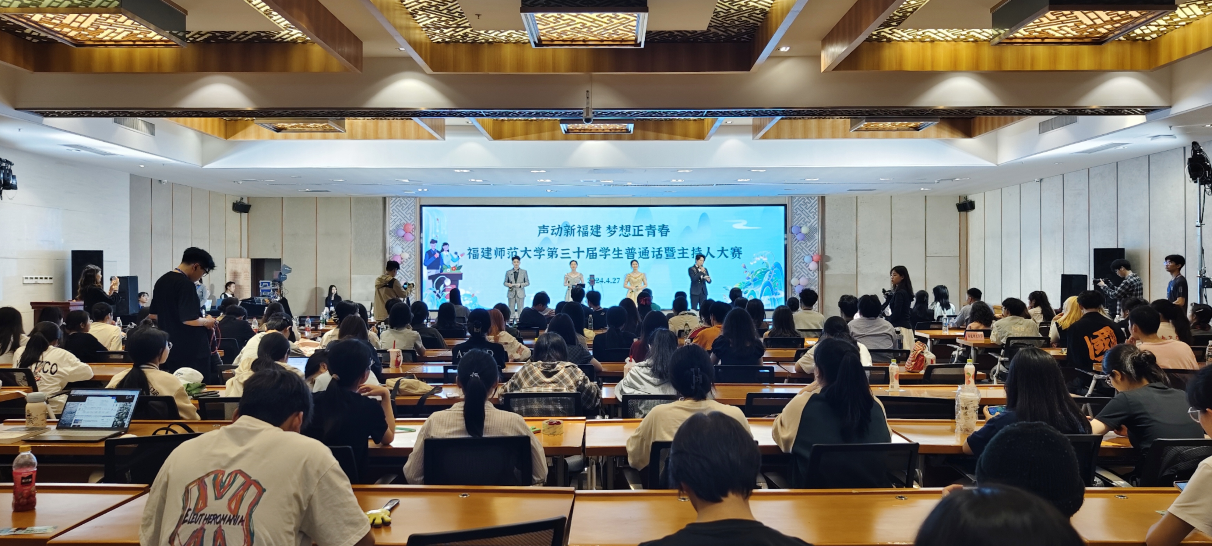 4月27日晚,由校党委宣传部、校语言文字工作委员会联合举办的“声动新福建 梦想正青春”校第三十届学生普通话暨主持人大赛决赛在旗山校区宏达厅举行。