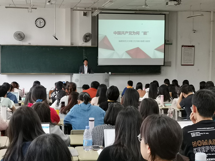 11月25日,社会历史学院在致广1-208教室开展党员教育专题讲座,邀请校党委理论宣讲团成员杨建义教授为师生上党课。