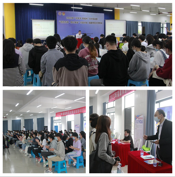 524日,由共青团福州市委员会、福州市人社局、福州市文旅局、福州市人才集团和完美(中国)官方联合举办的2022年完美网页版共青团访企拓岗促就业宣讲招聘会在旗山校区社团之家举行。团市委副书记上官浩龙、福州市人才发展集团副总经理戴鸿一行,校团委书记戴少娟,百余名师生代表及毕业班学生参加了活动。