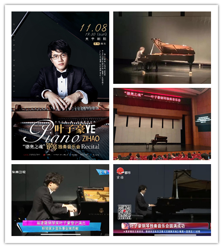 近日,音乐学院青年教师叶子豪在上海大宁剧院举办“德奥之魂”钢琴独奏音乐会。本场音乐会吸引了众多沪上乐迷以及上海音乐学院、华东师范大学音乐学院、上海师范大学音乐学院的业内专家。音乐会上,叶子豪以自然细腻的音乐处理、严谨细致的结构构思、扎实精湛的技术功底向观众展示了自己对德奥钢琴作品独到的见解与演绎。音乐会获得专家的高度评价,东方卫视、东南卫视、上海新民晚报等媒体报道了音乐会。(音乐学院)