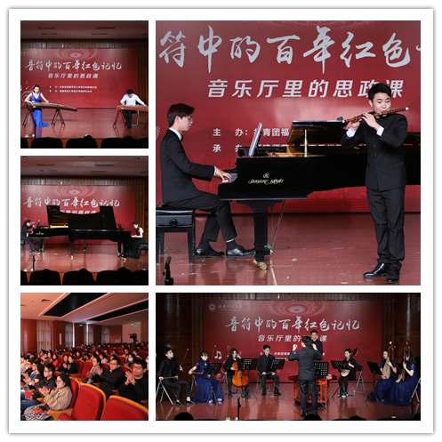 近日,“音符中的百年红色记忆”——音乐厅里的思政课在音乐学院演练厅开讲。机关党委、宣传部(文明办、新闻中心)、学生工作部(处)、校团委、马克思主义学院等代表到场观摩指导,音乐学院领导、青马工程培训班学员、研究生等近200名师生共同体验了一堂别开生面的思政课。